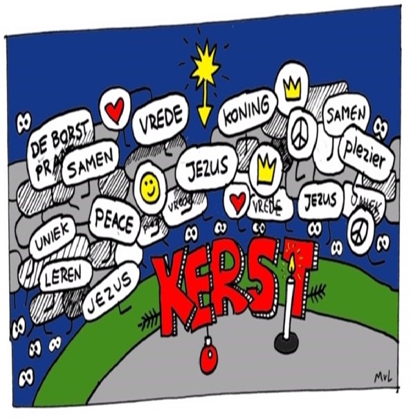Daarna heeft meester Martin het Kerstverhaal verteld, waarbij hij zelf de tekeningen had gemaakt. Tot slot galmde in de gymzaal “Ik speel trompet” en ging iedereen blij naar huis!